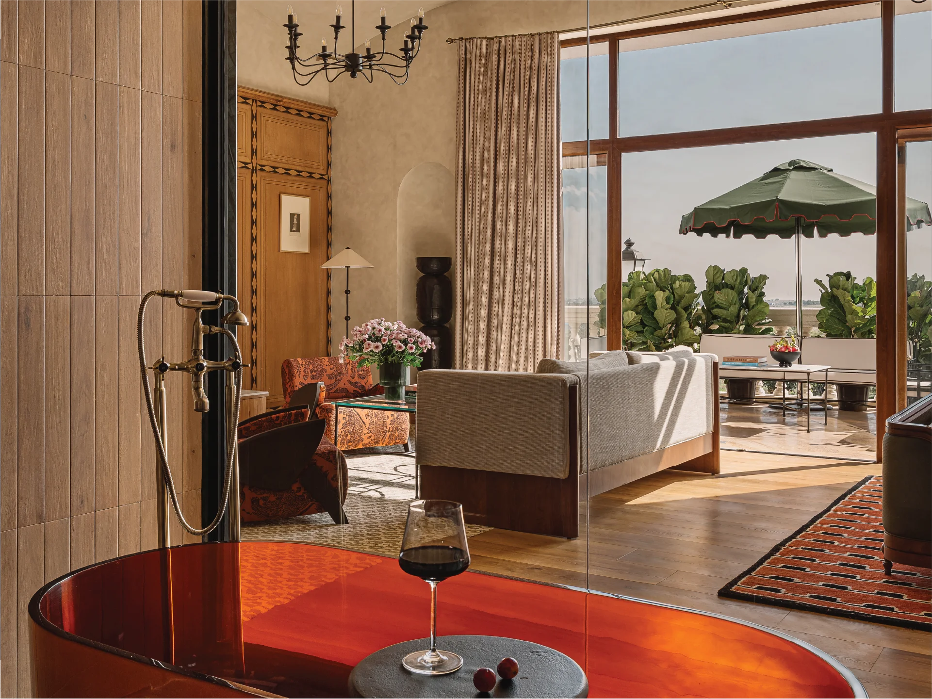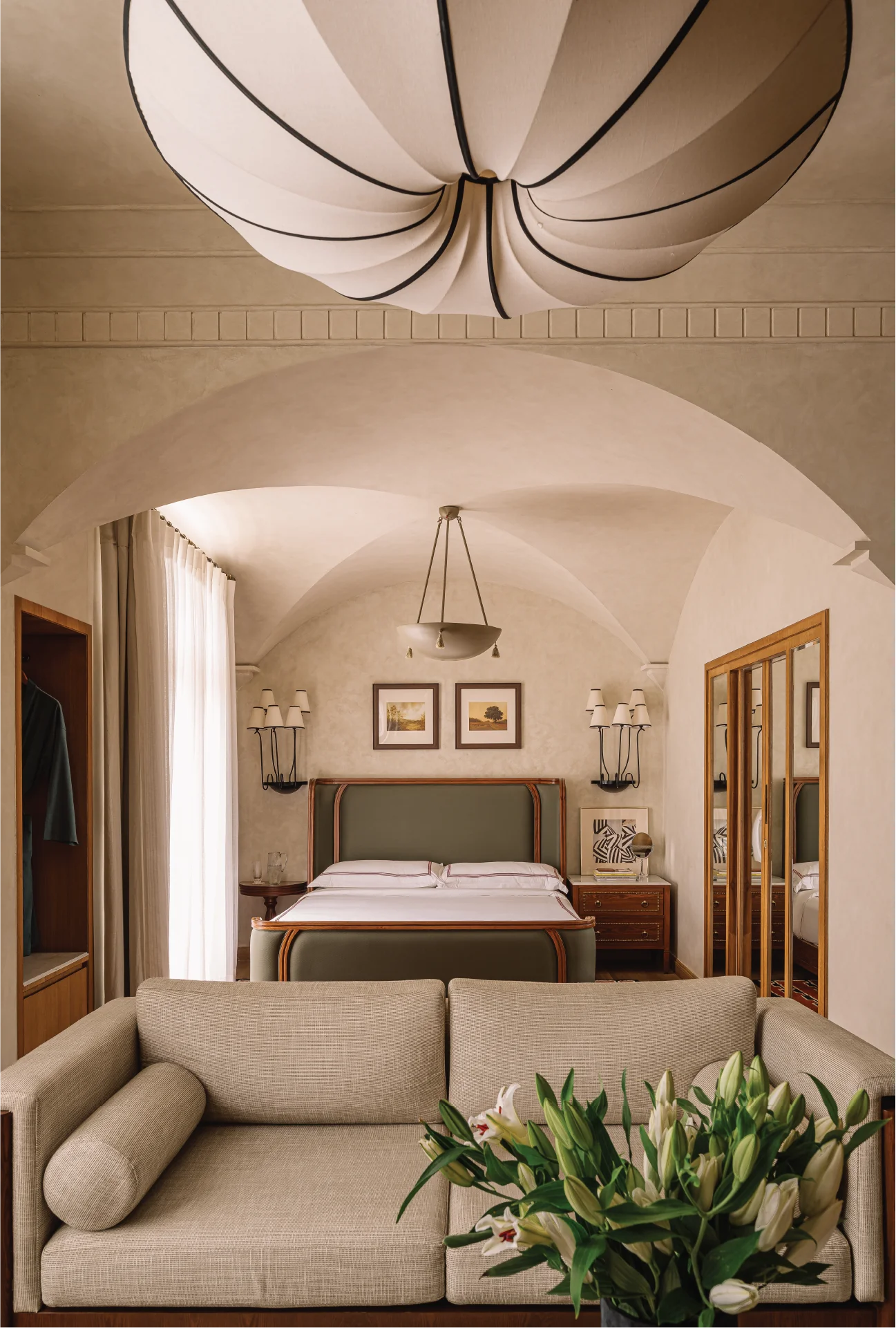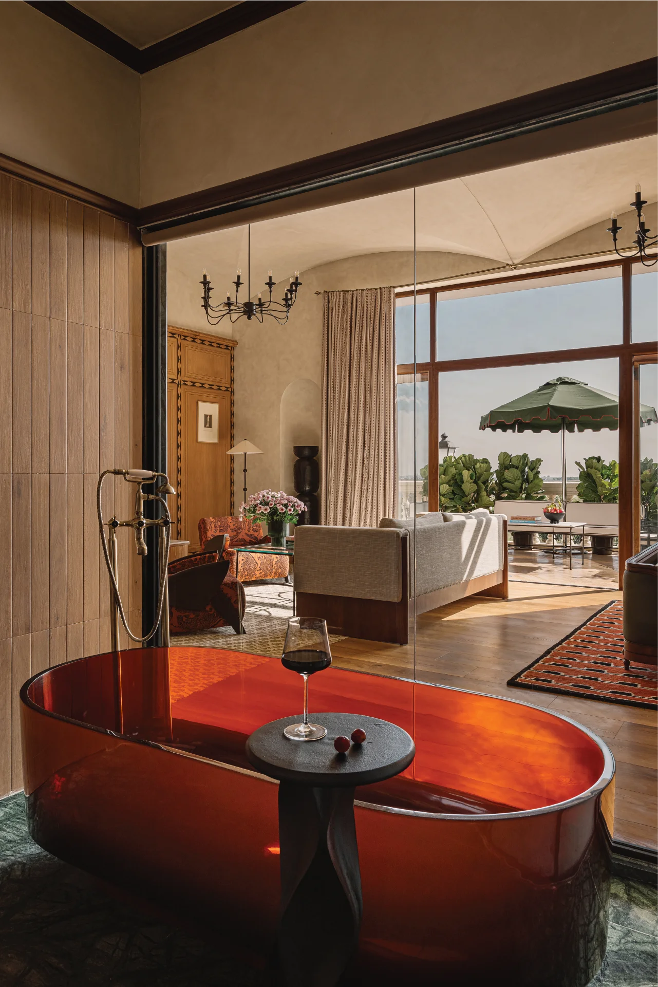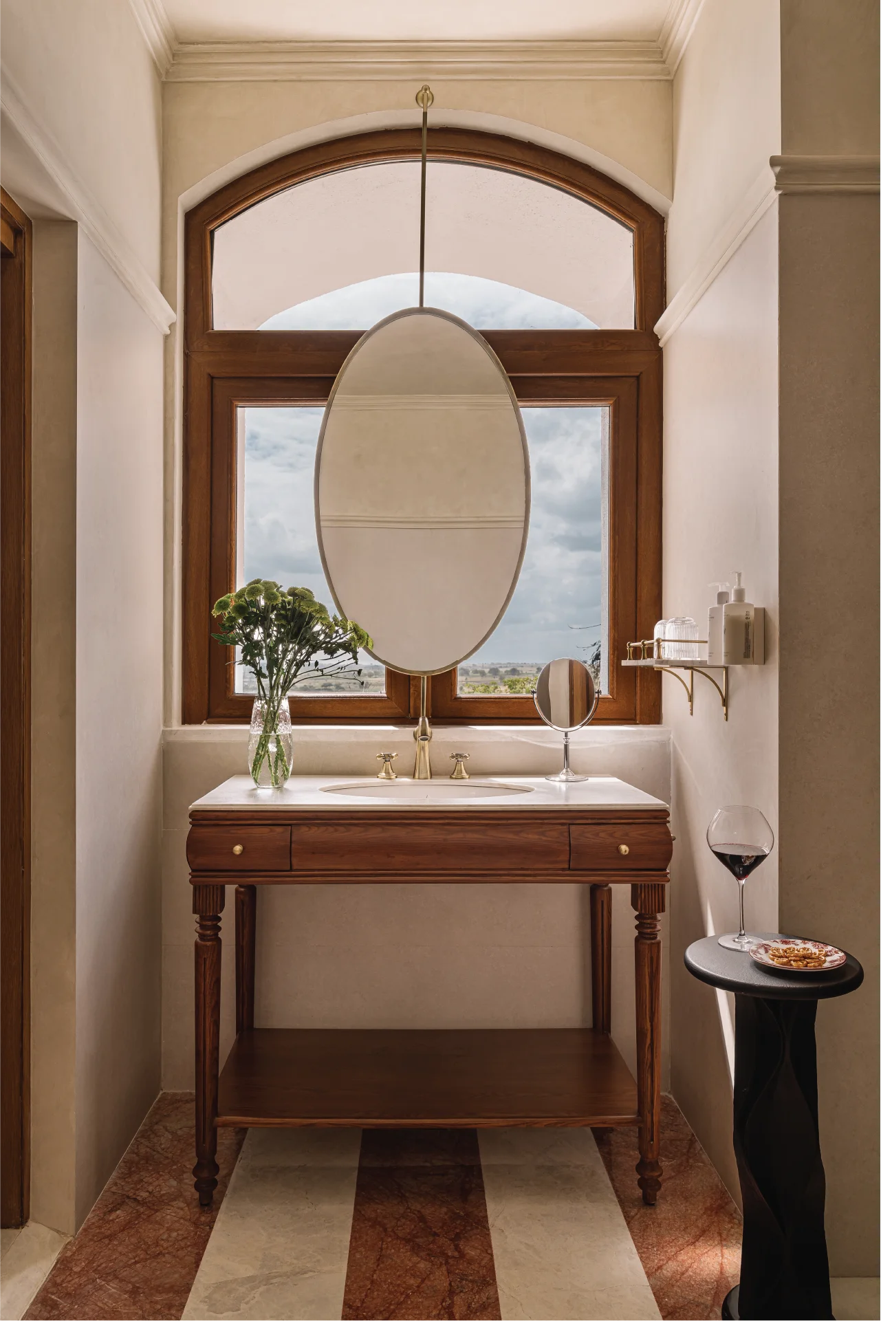 At the core of the project is the idea of intentional luxury, where every architectural and interior design decision supports a meaningful connection to context, heritage, and creativity. The boutique hotel design bridges historic architecture with a contemporary design language, combining neoclassical proportions with bold mid-century elements, bespoke furnishings, curated artworks, and locally sourced materials. Rooted in its landscape yet globally relevant, Irada represents a holistic design approach where architecture, interiors, and experience come together seamlessly.